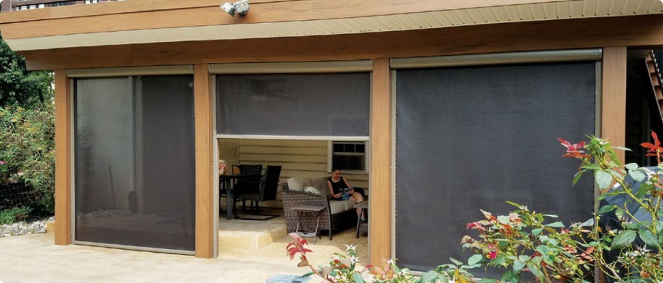 in use, the screens retract inside a protective cassette, opening up your space to the outdoors. With motorized screens, you can have the