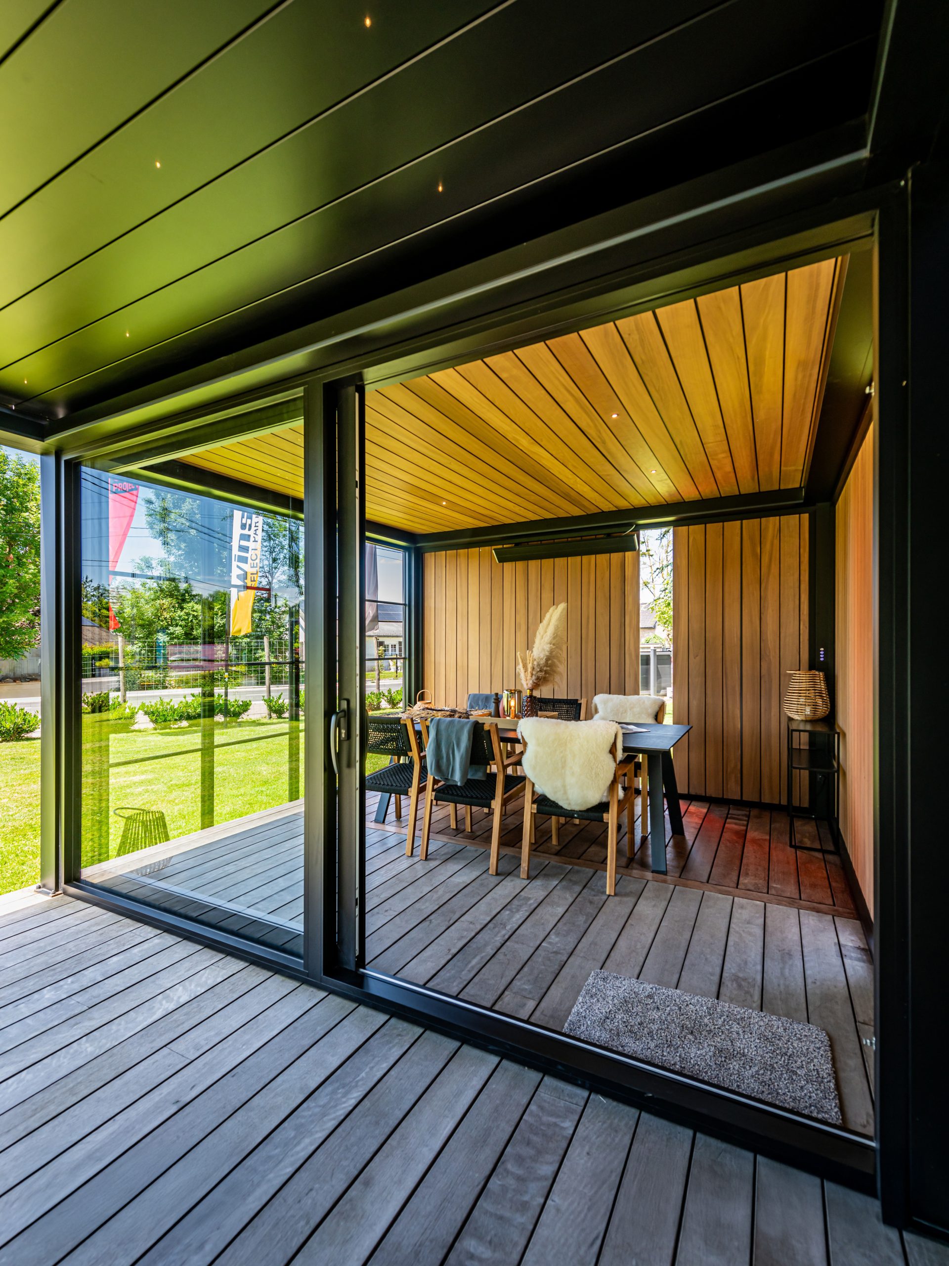 In addition, you can also hang a statement light fixture from the wooden roof using the suspension points. And thanks to the insulating or decorative mood walls, you are protected against the elements, and maintain the privacy you want.