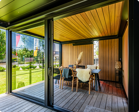 Our outdoor rooms are 100% modular and you can fully Personalize them yourself. Assign each module a specific role, such as a lounge area or an outdoor kitchen. The possibilities and applications are endless!