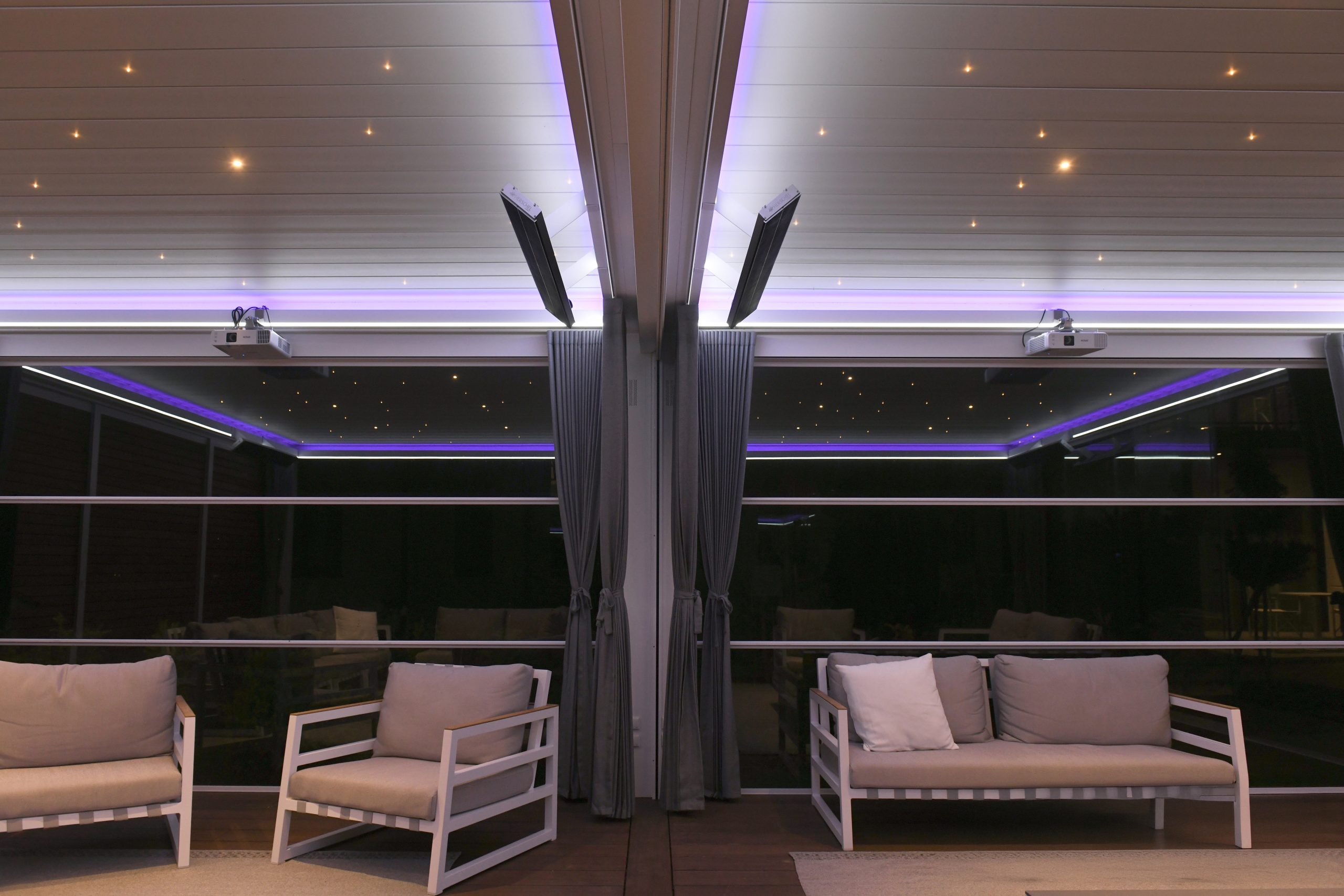 Do you particularly want more space for an outdoor kitchen with a dining area? Or would you rather have a closed bar with a lounge area under the Louver roof? Thanks to the insulated roof and the double-glazed aluminum (sliding) windows, you can sit comfortably in your pool house or Backyard room all year round.